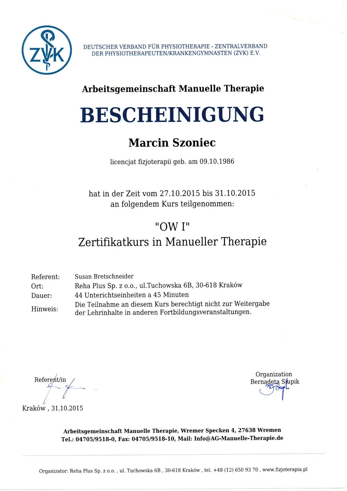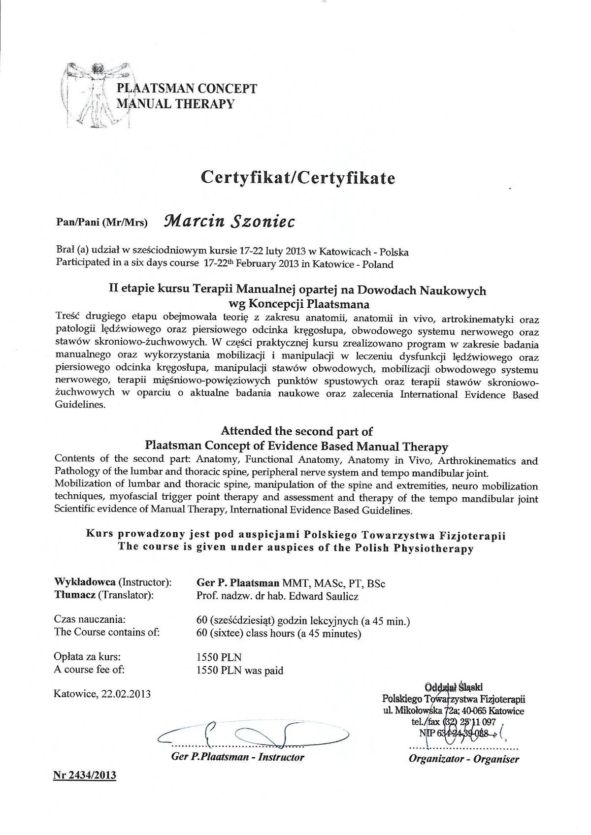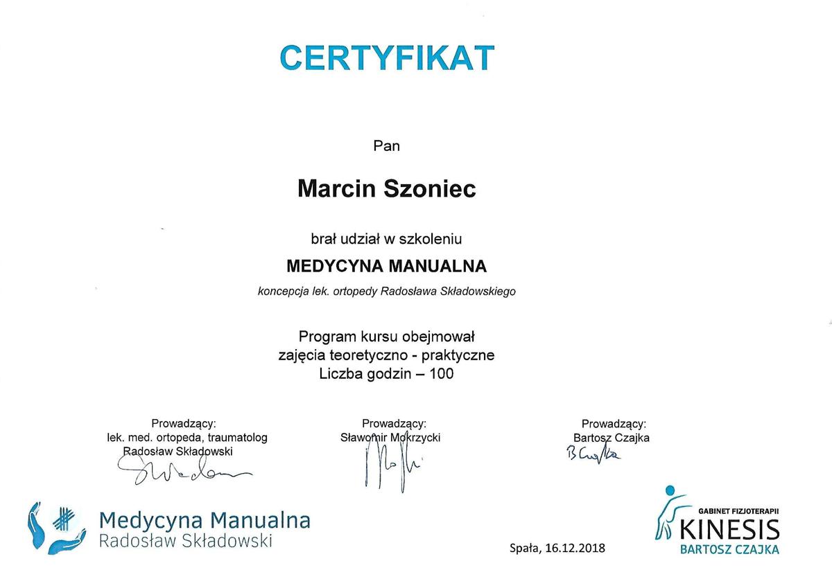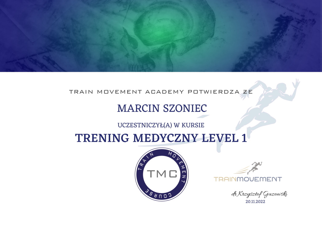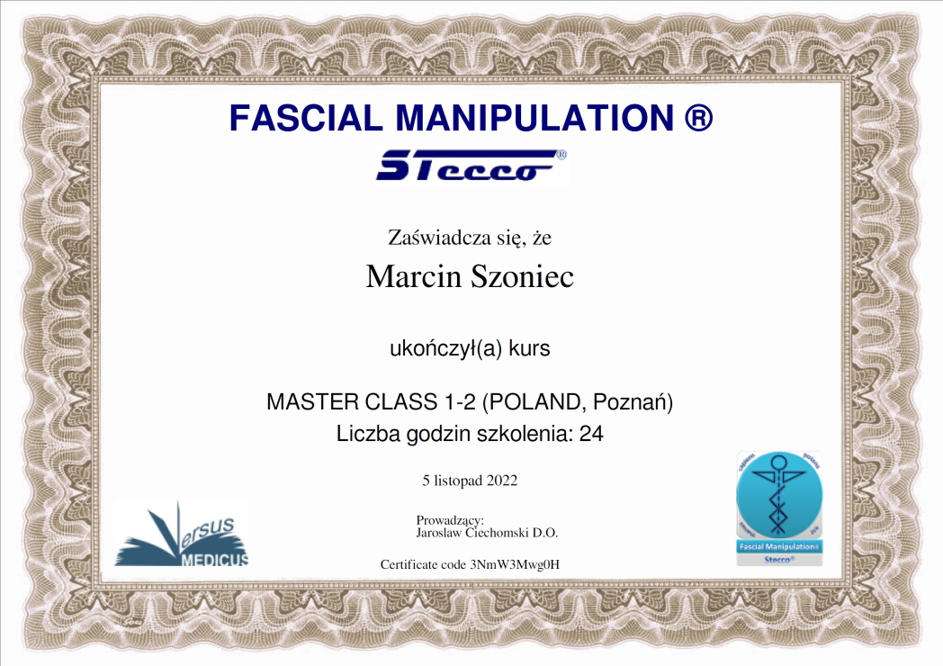 Jestem absolwentem Krakowskiej Szkoły Masażu, w 2013 ukończyłem studia fizjoterapii ze stopniem licencjata. Podczas mojej kariery ukończyłem liczne szkolenia z terapii manualnej, wisceralnej, chiropraktyki, igłoterapii, pinopresury, terapii powięziowej, stawiania ogniowych baniek. W 2018 zdałem egzamin państwowy w Warszawie na Naturopatę.